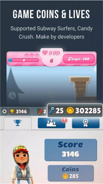 2、例如我们最经典的Subway Surfers地铁跑酷,点击logo,可以看到我们的插件功能,在这可以开启无限金钱,开启后,在应用内运行游戏即可享受高端的游戏体验。