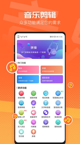 我最喜欢的是它的拼接功能,可以把多首歌组合在一起,做串烧音乐特别好玩。而且格式转换也支持很多种格式,aac、flac这些都能转,挺实用的。总的来说,这个app真的很适合音频编辑新手和爱好者,功能全面又简单好用。