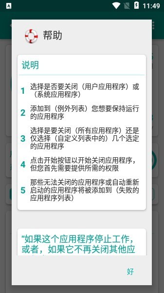 4、点击开始按钮以开始关闭应用程序,但您首先需要提供所需的权限。