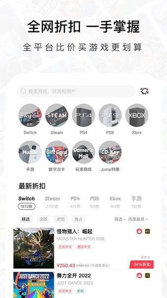 百万玩家好评推荐,游戏折扣种草神器,目前已支持Switch、Steam、PS4、PS5、Xbox游戏平台,Epic平台即将上线。立即下载体验,3A大作半价入手,史低游戏天天有!