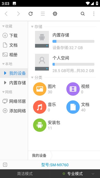 2、该软件的操作界面分为顶部功能栏、侧边导航栏和内容页面三大部分,图标使用了扁平化设计。支持以图标和列表视图显示。
