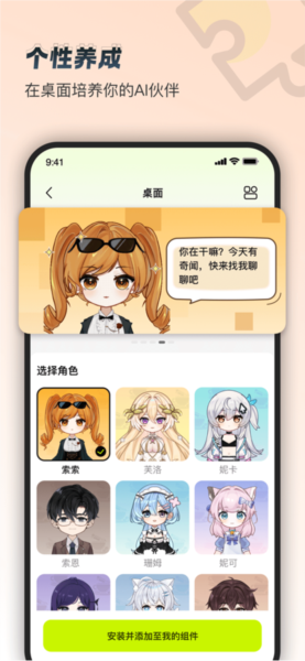 完成任务,进行调教,提升亲密度,你的ai伙伴随着跟你的共同经历、共同回忆的增多,也会随之成长,解锁更多声音、动画、话题、任务和能力!