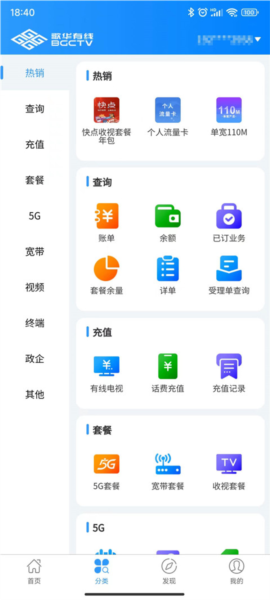 涵盖了5G业务、宽带业务、终端产品和有线业务四类业务及其相关的便捷服务功能。