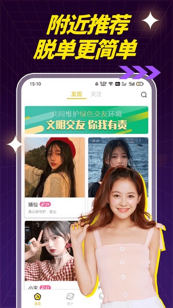 1、附近推荐,脱单更简单,脱单都是非常的高效,每位用户都可以互动;