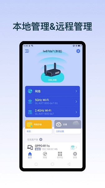 GLiNet路由器App是为GL.iNet路由器量身打造的手机端管理软件,旨在方便用户管理路由器和联网设备。该应用支持GL.iNet旗下大部分路由器的使用,允许用户随时随地进行远程访问,了解网络状态,并快速实现Mesh组网和主副节点管理,从而让网络管理变得简单而高效。全新的GL.iNet路由器官方App还增加了多项功能,包括对AX1800设备的支持和“网络向导”功能,为用户提供联网指导,如网线连接、SIM卡插入和USB连接手机等基本操作。这款值得信赖的无线路由器管理助手旨在统一管理网关设备,为用户带来更便捷的生活。