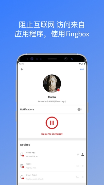 • 设置家长控制功能,以安排屏幕时间和暂停互联网访问