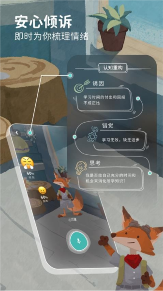 智能技术与心理治疗相结合,还设置神奇的思维导图可以帮助你分析自己的情绪。