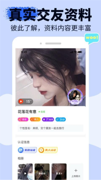 个人主页展示:自由上传照片展示个性,吸引他人关注。