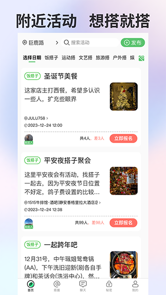 这个搭子社交app看起来挺有意思的,专为年轻人设计,能根据兴趣找到各种“搭子”。无论是想找人一起吃饭、运动还是学习,都能精准匹配,感觉比传统社交方式更高效也更有针对性。