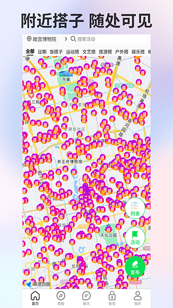定位功能:根据用户的地理位置定位附近的搭子,帮助用户找到与自己在同一地区有相同兴趣和想法的搭子。