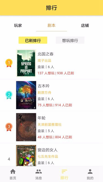 4、排行实时掌握,玩家排行、剧本排行与店铺排行可以一手掌握;