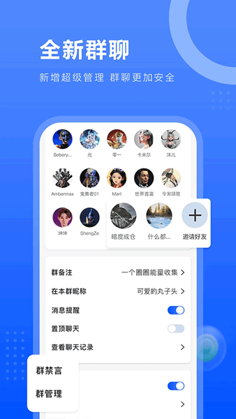 支持创建和管理群聊,加入各种兴趣社群,与志同道合的朋友交流互动