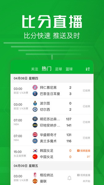 【分数直播】因为随时随地都可以看足球篮球,可以得到实时的数据推送,所以很方便。
