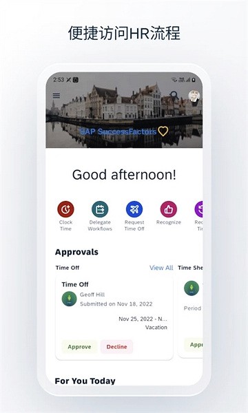 在快速卡片、绩效反馈、学习审批和提醒等多个接触点,集成 SAP SuccessFactors HXM Suite 和 Microsoft Teams,支持员工快速互联、开展协作和完成任务。