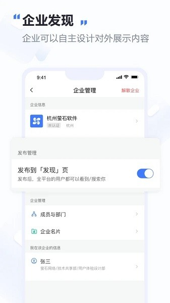 萤石易联客户端是一款专为企业员工设计的手机办公app,提供移动工作台、智能审批和强大通讯录功能,帮助用户高效轻松地完成工作。此外,用户还能通过该平台获取最新的企业动态信息,实现及时了解企业动向。