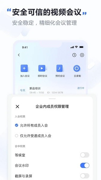 会议安全:与会人身份标识、邀请人标识、与会人异常自动预警和行为溯源、音视频全程加密、企业专属秘钥、与会人行为管理等全方位保障视频会议的安全
