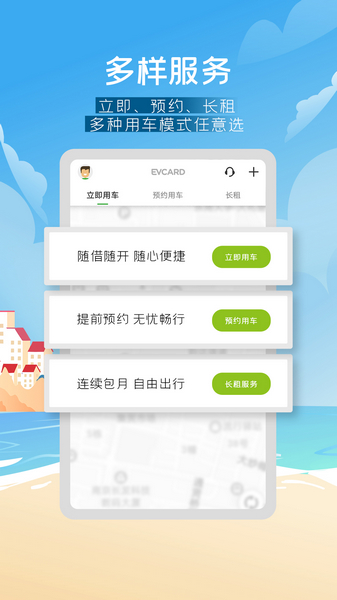 EVCARD的服务抛开了传统车辆租赁的柜面服务形式,只需下载并操作您正在游览的这个EVCARD APP,便可完成车辆租还,真正达到全程自助的智能、便捷的使用体验。