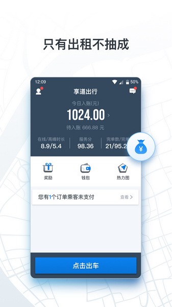 用户可以在线随时点击出车,轻松的进行出车接单。