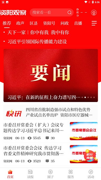 以幻灯、文字、图片、视频等多种表现形式,开设有推荐、资阳、天下、政情、融媒、视频等栏目,全天新闻实时更新,让您一手掌握最及时全面的本地资讯,最热门的国际国内大事要事,最酷炫的美图活动。用户注册登录以后还可以对新闻事件进行评论与分享,将好新闻与朋友们一起分享。