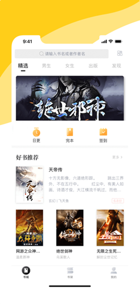 1、可以快速的搜索到你喜爱的小说作品添加至你的个人书架;