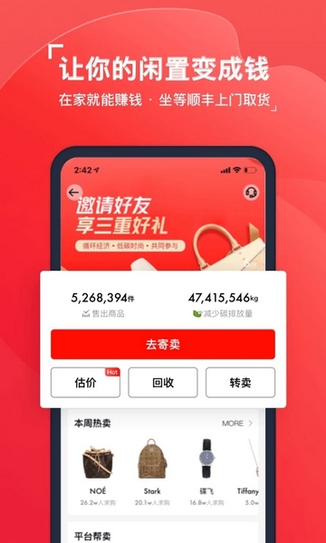 方便的一站式寄售服务:对每个商品进行详细的验真、清洗、养护、拍照、测量以及推荐,卖家只需顺丰到付寄出商品,即可坐等收钱,省心又省力。