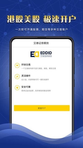 艾德一站通App是深圳市艾德网络科技发展有限公司旗下集港股、美股及期货投资于一体的一站式投资服务平台,能依托于艾德控股集团的多种类牌照资质。艾德一站通主要支持港股交易、美股交易、国际期货交易、期货交易等金融交易功能,并根据投资者需求细分为港股注册开户、存取款等功能,为用户提供方便、快捷的交易渠道。