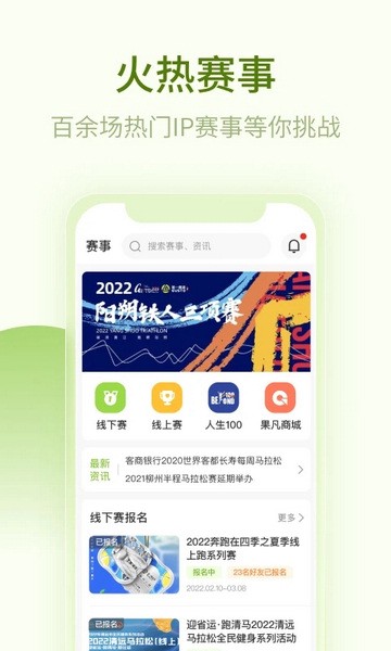 【赛事报名】可随时掌握全国数十场马拉松、越野赛、铁三的最新资讯,并报名参赛。
