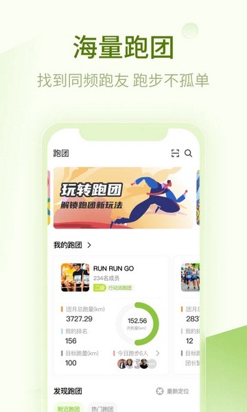 3、加入跑团,与团员共同成长,共同分享跑步乐趣;