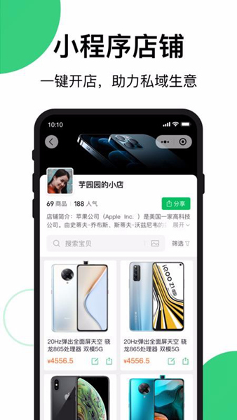 6、支持分享小程序店铺,便于好友点击进入就能浏览店铺;