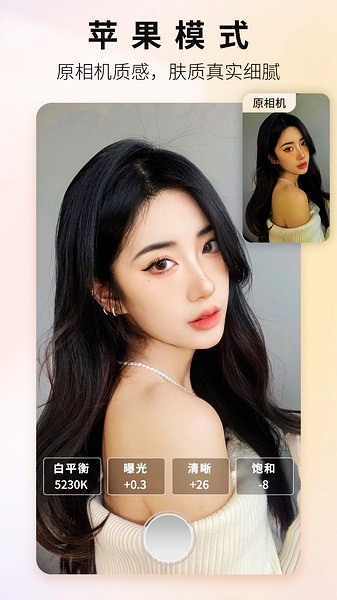 苹果模式中有无比贴心的一键冷白皮功能,非常适合用户使用。而且拍完可以直接修,参数直接调,这种一站式拍照修图的体验,是要把拍照人懒得修图的拖延症都治好吧。