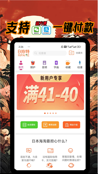 日拍特是一款主打日本海淘的购物应用,在这里为各位用户们提供了日本电商产品,可通过分类或者搜索功能方便的寻找感兴趣的商品进行下单,平台有着专业人员完成打包运输并清关,给各位用户们带来更为便利的海淘购物体验。