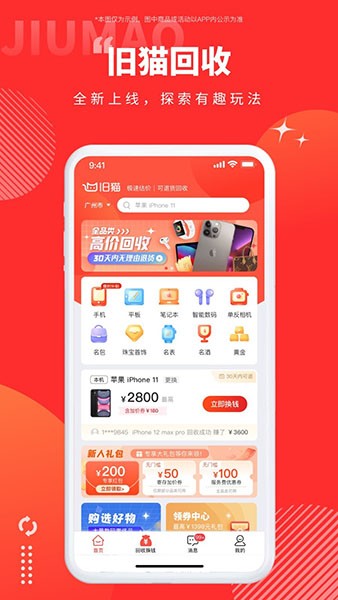 4、多场景回收:旧猫app支持多种类型的二手商品回收,适应用户多元化的需求,无论是电子产品、家居用品还是其他类别,均可在平台上找到合适的回收渠道。