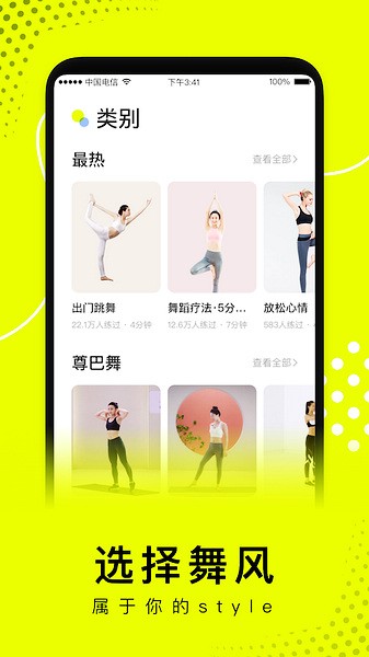 3、全民可选的系列课程,无论你是健身操燃脂舞方面的专家还是业余小白,无论大基数还是小基数,我们都提供给了适合你来跟练的定制化课程,打造更加完美的身材;