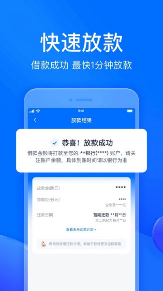 2、放款速度快:最快只需要1分钟即可放款!