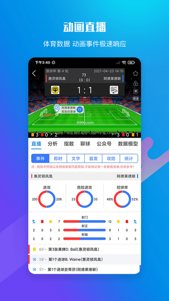 4、足球比分直播-即时比分数据及时更新,方便简洁;