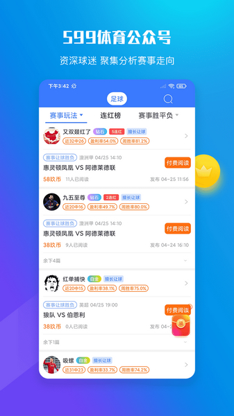 作为一个热爱足球的用户,我最近尝试了这款名为“599比分”的体育赛事软件,感觉它真的挺不错的。首先,这个软件的功能非常全面,不仅提供最新的足球资讯和新闻,还能在线观看直播,并且有专业的赛事分析功能。对于喜欢足球的人来说,这是一个非常友好的平台。