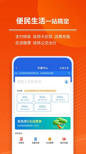 生活服务这块也做得挺到位,充值缴费、转账还款一键搞定,省时又省力。最贴心的是关闭了一键支付功能,避免不小心消费,这个小细节让我觉得他们真的很懂用户的心思。