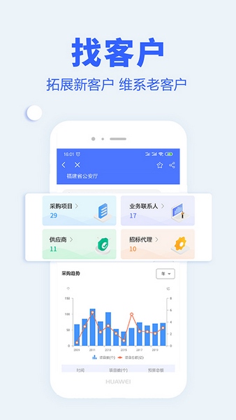 招标雷达是一款非常实用的招标软件,这里有超多招标信息可以查看,支持搜索查找,且有筛选功能可以快速找到需要的项目类型。同时还可以对感兴趣的行业进行关注,这样就能获得最新的相关小心推送,保证不会错过任何一个项目。此外软件中还提供了这里的每个单位机构的详细信息,更有数据统计分析的功能可以使用,且采用了图表的形式进行呈现。