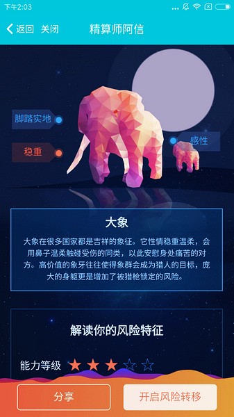 2、风险自知别听别人随便吓唬你,我们用智能化方式帮你了解自己;