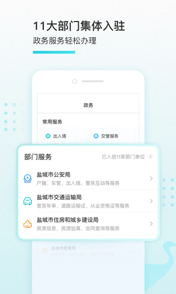 我的盐城app是一款盐城市委市政府专为盐城本地市民研发的政务服务软件,功能丰富,操作简单,涵盖了大家平时生活的各个方面,是一款非常实用的手机民生服务应用软件。软件内提供政务办事、医疗健康、交通出行、社会保障、智慧教育、房产服务、公共服务等各个方面,全方位的保障盐城群众的生活服务日常。11大政府部门集体入驻,办公透明化,大部分的日常生活服务都能在我的盐城app中申请办理。如果市民有任何想要了解的政务信息,也都可以在软件上查询了解。我的盐城软件是盐城市智慧城市建设的门户,致力于带给大家最优质的使用体验。