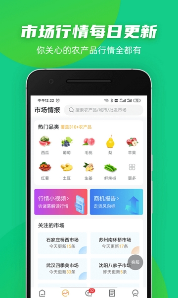 全国70+农业批发市场,800+农产品品类,行情报价每日更新,价格波动、市场走货看一眼门清!