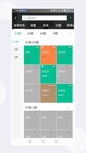- 支持查看小区、楼栋、楼层下的总房间数;