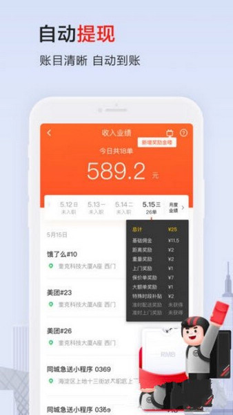 最让我心动的是它的智能派单功能,系统会根据你的位置和周边订单情况,自动规划最优路线,省时又高效。而且,还能实时查看收入,钱到账也特别及时,完全不用担心被拖欠。