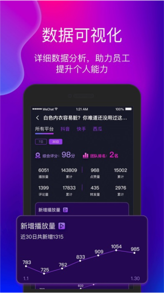 艾视嘉app官方版是一款专注于短视频创作与营销的强大应用,旨在帮助每一位用户释放潜在的网红魅力,通过创新技术和精准的数据分析,使每个人都能轻松打造出极具吸引力的短视频内容。这不仅是一款短视频拍摄软件,更是一个能够提供全方位营销解决方案的平台,助力用户快速成长为网络红人。