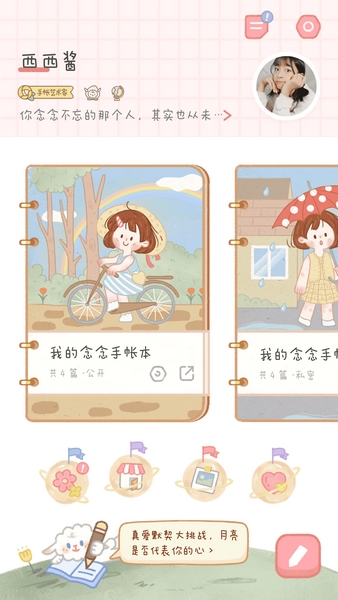 念念手帐app是一款很治愈的手账软件,界面温馨可爱,功能齐全。它不仅是一个记录生活的工具,还能用来做手账装饰,有很多丰富的素材和贴纸可以选择。你可以用它来记心情、旅行计划或者难过的事情,甚至还可以当记账工具。最棒的是,它支持云同步,你的手账内容可以永久保存,不用担心丢失。