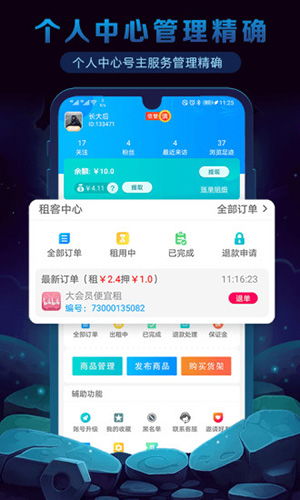 2.全新的账户租用软件,该软件就是将自己的账号进行租用。