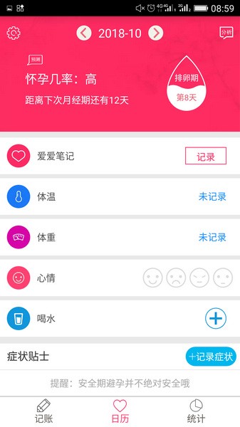 最近发现了一款挺不错的app叫排卵期安全期日历,感觉对女性朋友来说真的很有用。这个软件主要是用来预测经期、排卵期和安全期的,还能记录经期和爱爱的日子,帮助大家更好地了解自己的身体状况。