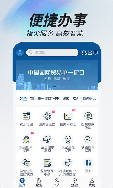 总的来说,这款App无疑是一款为通关业务量身打造的神器,无论是企业还是个人用户,都能从中受益。它不仅简化了复杂的通关流程,还通过智能化功能极大提升了效率,节省了时间和精力。对于经常需要处理通关事务的人来说,掌上单一窗口绝对是一个不可多得的好帮手!