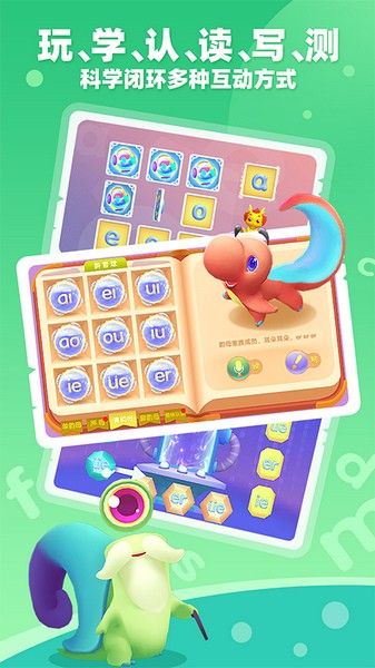 小伴龙拼音是一款供低龄幼儿使用的拼音教学启蒙软件。这款软件以游戏的方式来帮助幼儿去认识拼音音节,教授正确的发音读法,将基础的拼音知识传授给幼儿。同时,家长也可以在软件上进行设置,可以开启不同的功能来引导小孩子去学习,内置多种引导互动方式来吸引孩子的学习兴趣,并且内容都是经由专业幼教团队制作的。