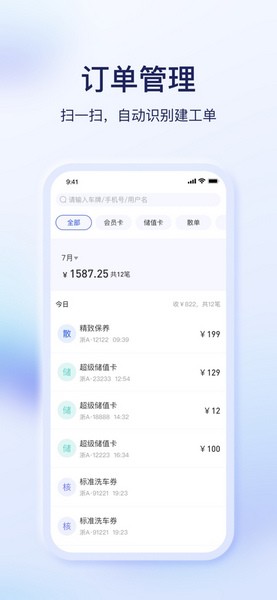 e车e卡app是一款供汽车商家使用的店铺服务管理软件。这款软件能够为用户提供多种汽车服务项目管理功能,包括汽车保养、加油、维修等,每一笔服务订单信息都会被记录在软件中。同时,用户可以通过扫码的方式来查看每位客户的信息,还可以在软件中为客户办理登记会员卡,管理好店铺中的每一位会员。
